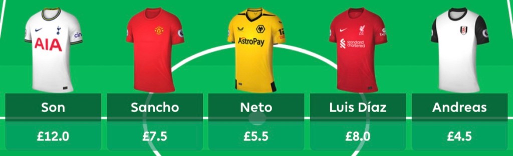 Potentially the entire teams star man, Son (£12.0m) was a difficult choice over Salah (£13.0m) but that extra mil plus a very similar goalscoring output along with the momentum Spurs carry into the new season gave him the edge for this team. With the departure of Sadio Mane over the summer and how well he played last year, Luis Diaz (£8.0m) is an excellent choice to grab a slice of a very potent Liverpool attack without breaking the bank. If Ronaldo was to leave United (as of writing he is still there), then picking up Jadon Sancho (£7.5m) could be the steal of the season. Even despite United’s attacking woes last year, Sancho still ranked well for chances created and in Ten Haag’s side, this could definitely lead to tangible output. The last two players in midfield are Neto (£5.5m) and Andreas (£4.5m). Both players are great value at those prices and are likely to be key parts of the way both Wolves and Fulham operate this coming season.